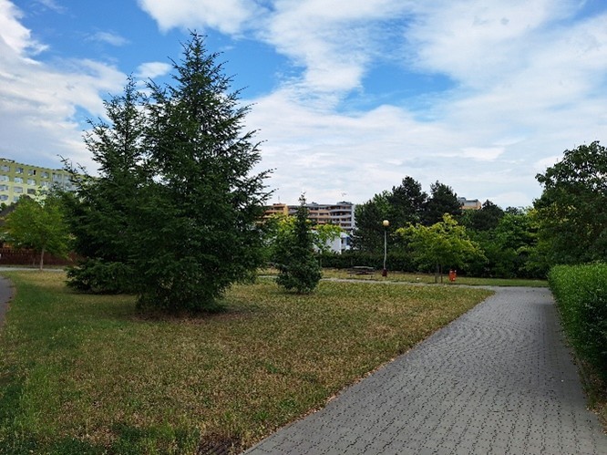 Doplnění volné plochy v Novém parku v sídlišti Severní město o 3 kusy tzv. zemních trampolín typu XXL o rozměru 210 x 210 cm se skákací plochou 150 x 150 cm.